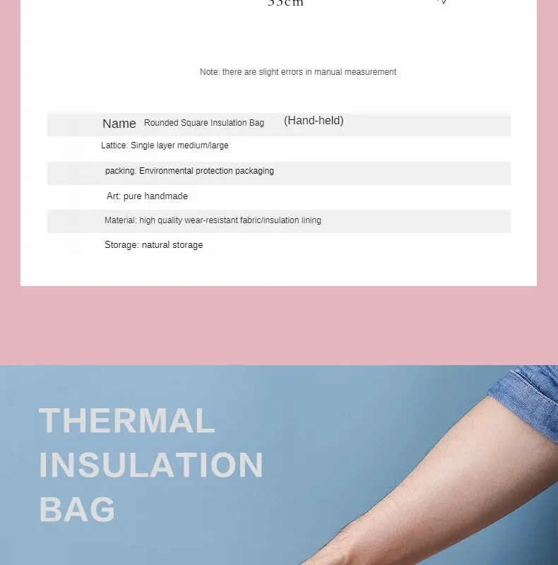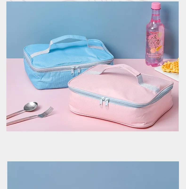Features: 1. The insulation is lined with food-grade thickened aluminum foil, the outer layer is made of waterproof fabric, and the double zipper is smooth and durable. 2. Good Insulation: Can keep food warm or refrigerated for hours, perfect for a simple lunch or breakfast with one person. 3.Easy to use: The small size is convenient to carry office or school lunches and snacks, carry personal small items or spare medicines with you, and can also be used as a cosmetic bag. 4. Portable: It can be compressed and folded, so it won't take up much space. Name: Square lunch bag Material: Oxford cloth Dimensions: 26x20x9, 28x22x7, 31x24.5x7 color: gray,blue,pink Package Includes: 1 x lunch bag