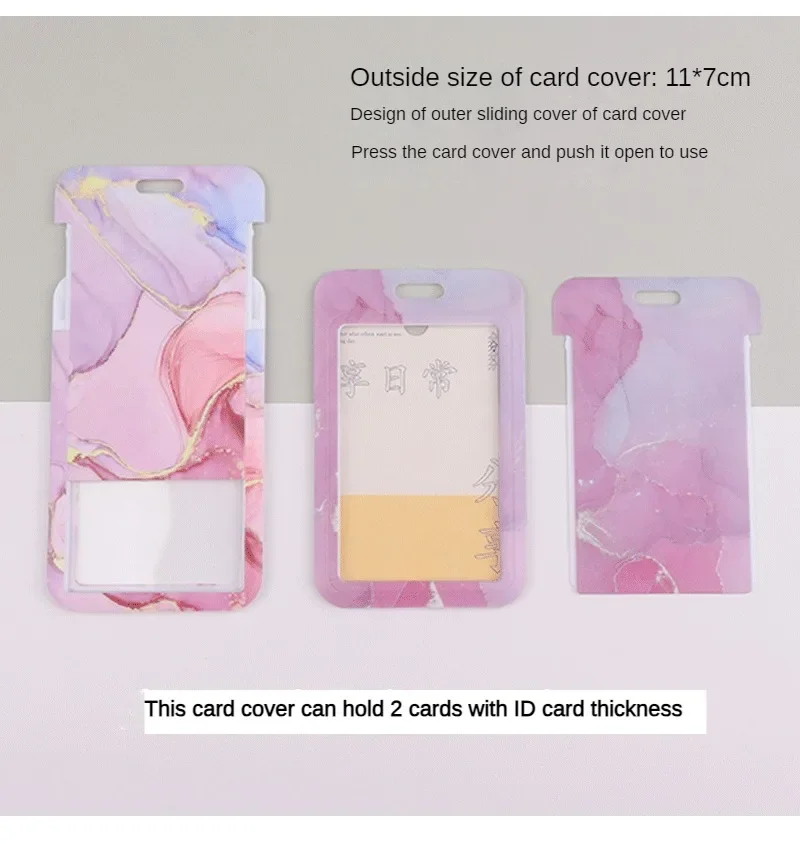 Brand new and high quality Style:Fashion,Cute Type:Card holder Card Holder Size: 11*7CM Can hold cards: 8.6x5.4cm Hanging rope length: 45cm Color:As shown Characteristic: 1.Sliding cover design It can slide up and down freely, hide the snap fastener, the card is not easy to fall off after it is fastened 2.Double layer large capacity, more practical Easily put down two ID card sized cards Package Includes:1PCSx Card holder Note: 1.Please allow 0.1-0.3cm differences due to manual measurement, thanks. 2.Please understand because of the light irradiation or computer display difference, so I can't guarantee photos and real color is 100% the same.