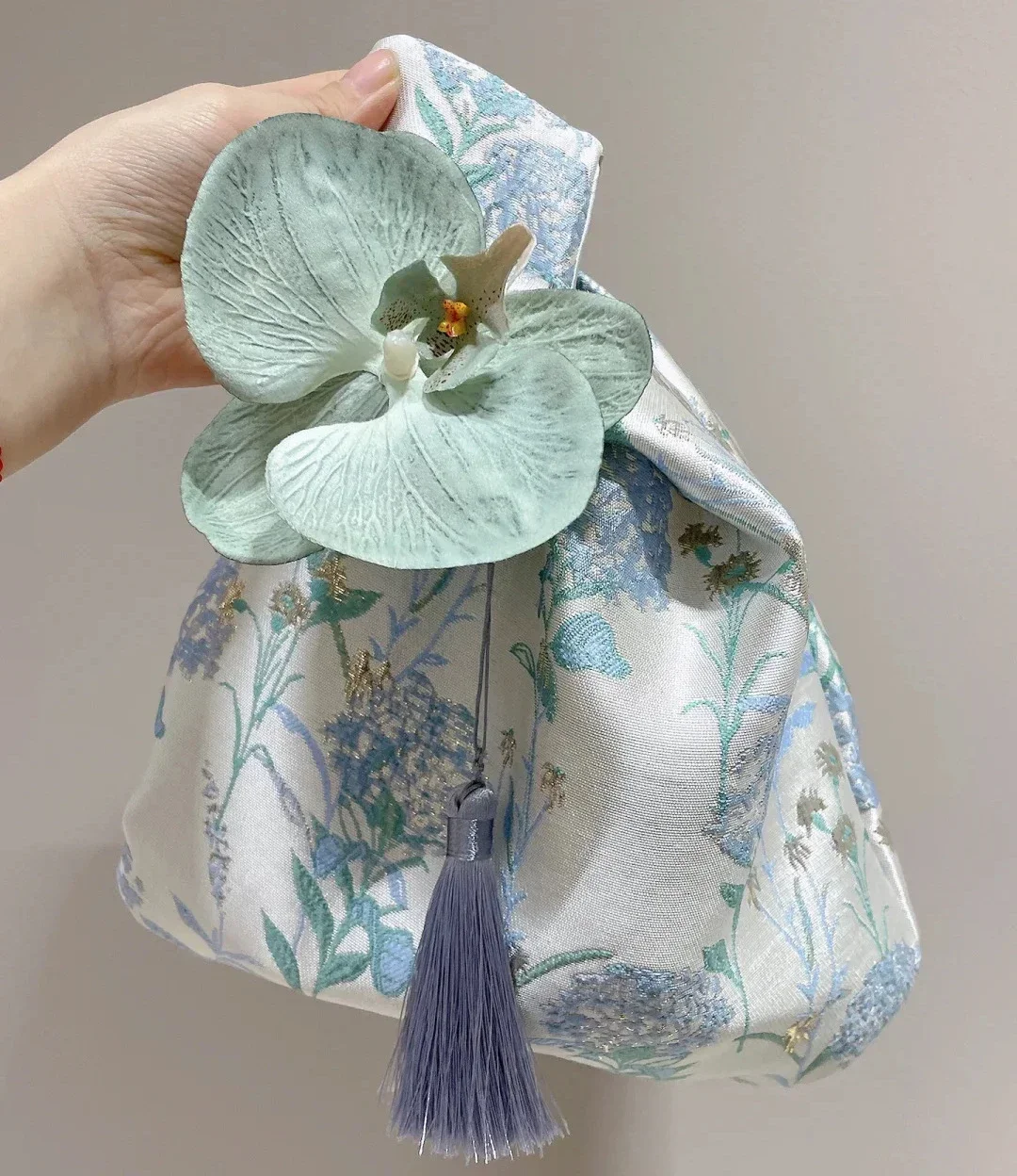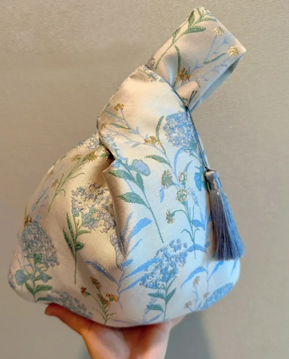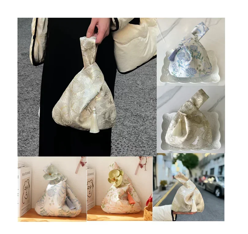 Product Type: Tassel Knot Wrist Bag Material: knitted Gender: Female Style: Chinese Color: champagne, pink, blue Size: 35*26cm Note: 1. Due to computers display colors differently, the color may vary slightly from the above images, Thanks for your understanding! 2. Manual measured, please allow 1-2cm error 3. You have any questions, please feel free to contact us, we will reply as soon as possible and help you solve !