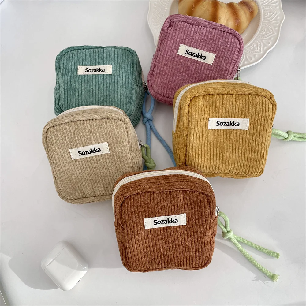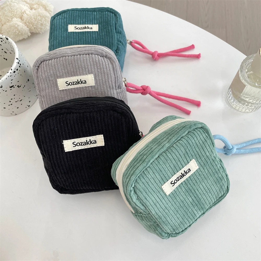Kawaii Corduroy Travel Cosmetic Lipstick Jewelry Storage Bag Sanitary Napkin Bag Women Makeup Handbags Organizer Pouch Bag