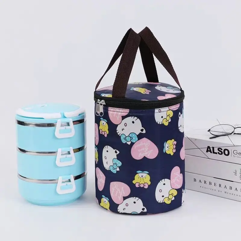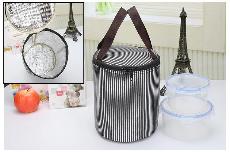 New Cylindrical Lunch Bag Thermal Insulation Barrel Pouch Portable Lunchbox Bag Waterproof Food Preservation Ice Bag Cooler Bags