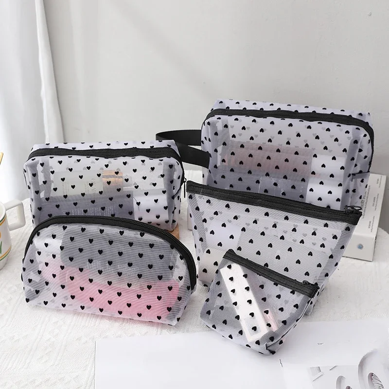 New Mesh Transparent Cosmetic Bags Small Large Clear Purple Makeup Bag Portable Travel Toiletry Organizer Lipstick Storage Pouch