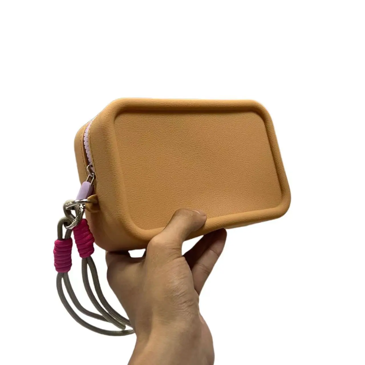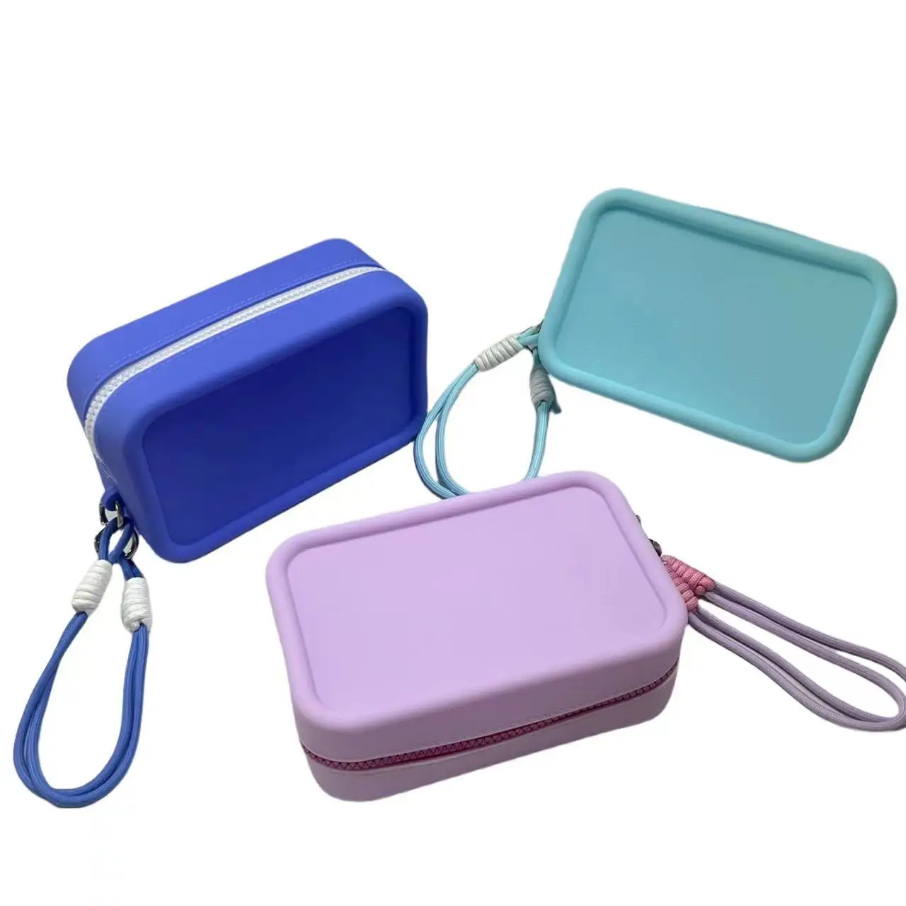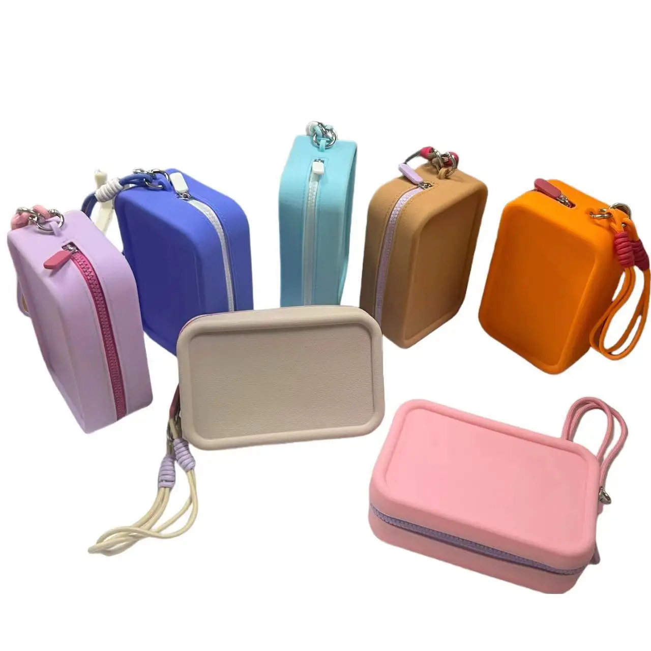 Fashion solid color silicone square coin purse mini small item bag lipstick cosmetic bag data cable storage bag female wallet