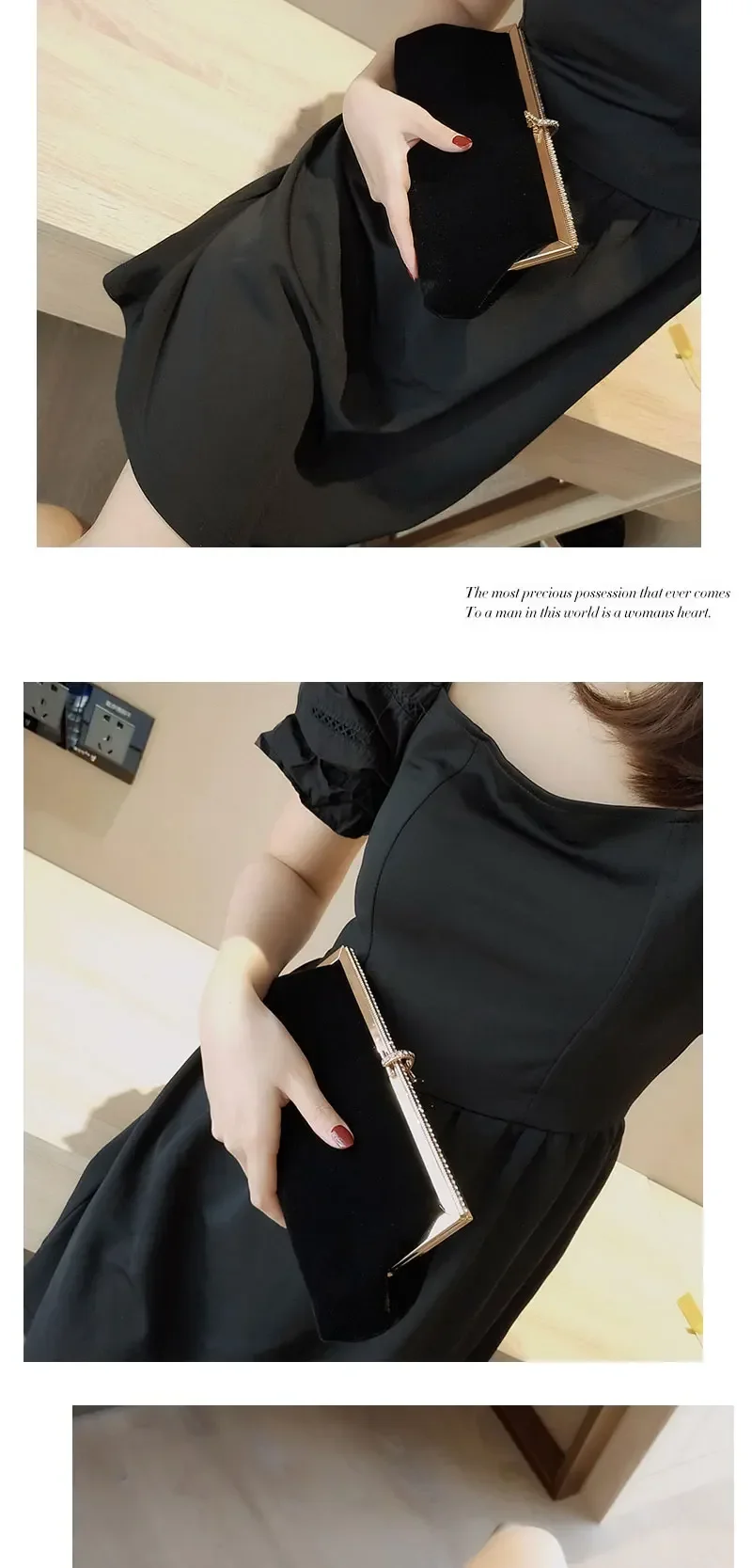 Rectangular shaped handbag clutch, retro black color, easy to open and close with lock closure.